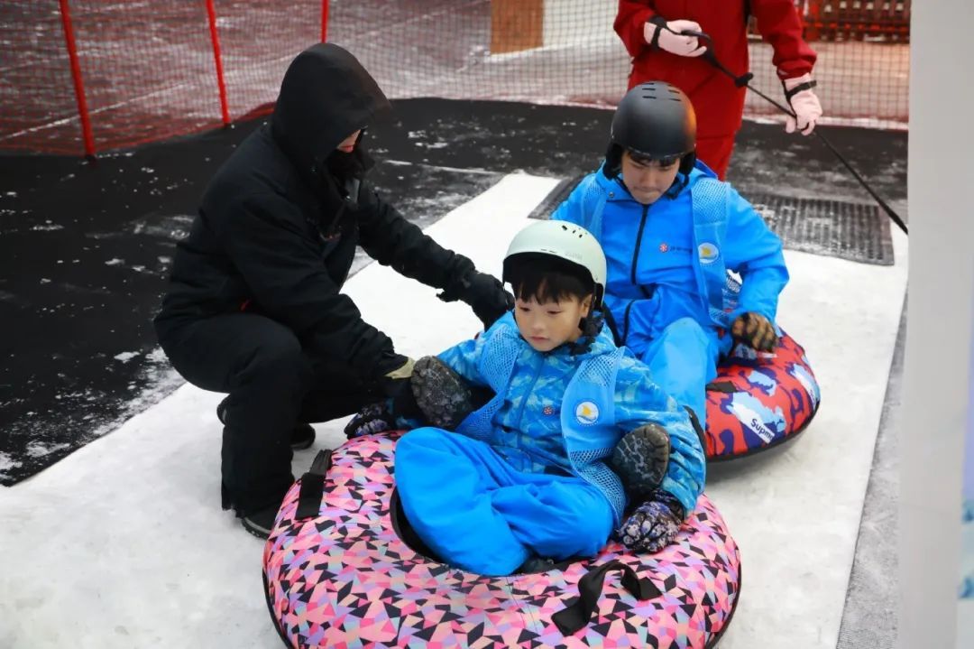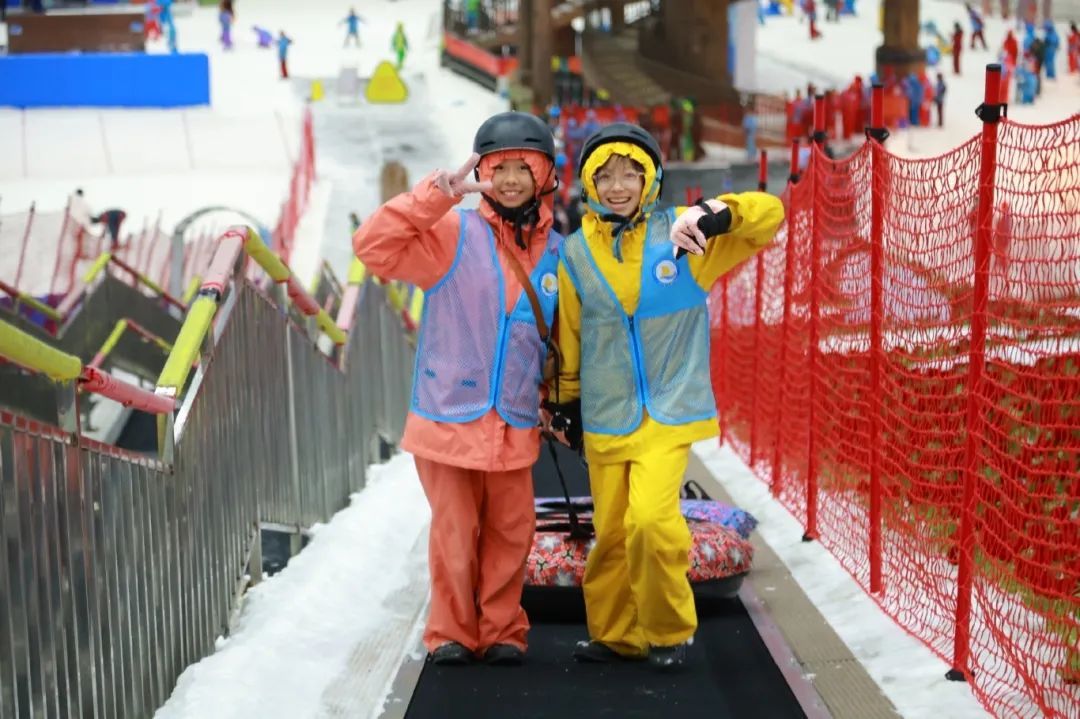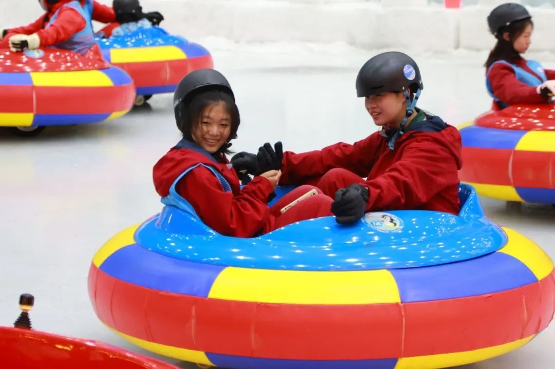 研学首站聚焦于融创雪世界冰雪探索实践。学子们换上装备,踏入银装素裹的冰雪王国,亲身体验滑雪板上的平衡控制、雪圈滑降的勇气挑战等基础冰雪运动项目。这不仅是速度与激情的初体验,更是一次克服低温环境、掌握新技能、锻炼胆识与毅力的宝贵实践。